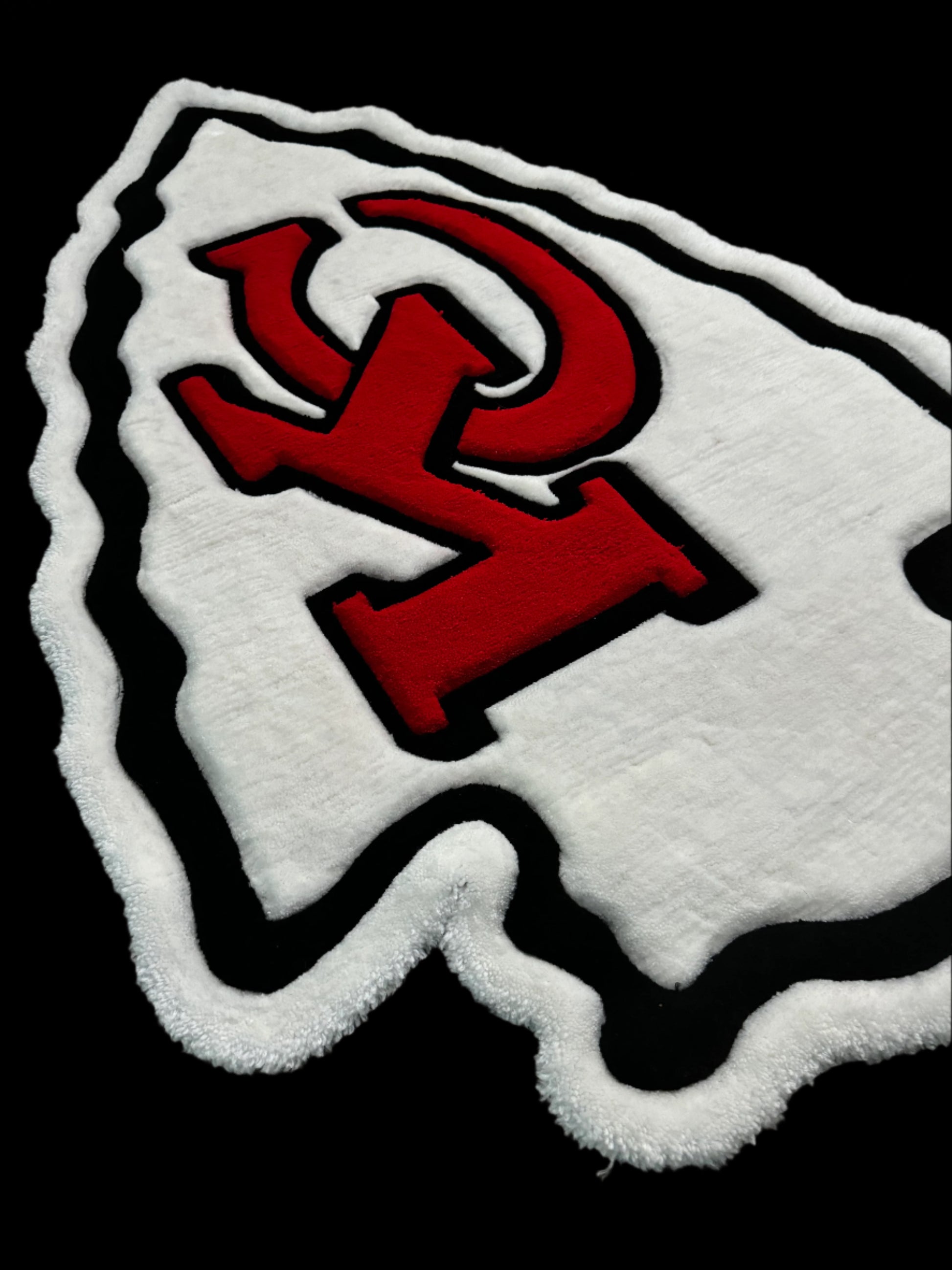 Elevate your game room with our 100% handmade Chiefs Logo Rug! Made with premium acrylic yarn, this 4ft 7in x 3ft rug is perfect for showcasing your love for the Chiefs. Add this unique and high-quality piece to your collection for the ultimate fan experience.