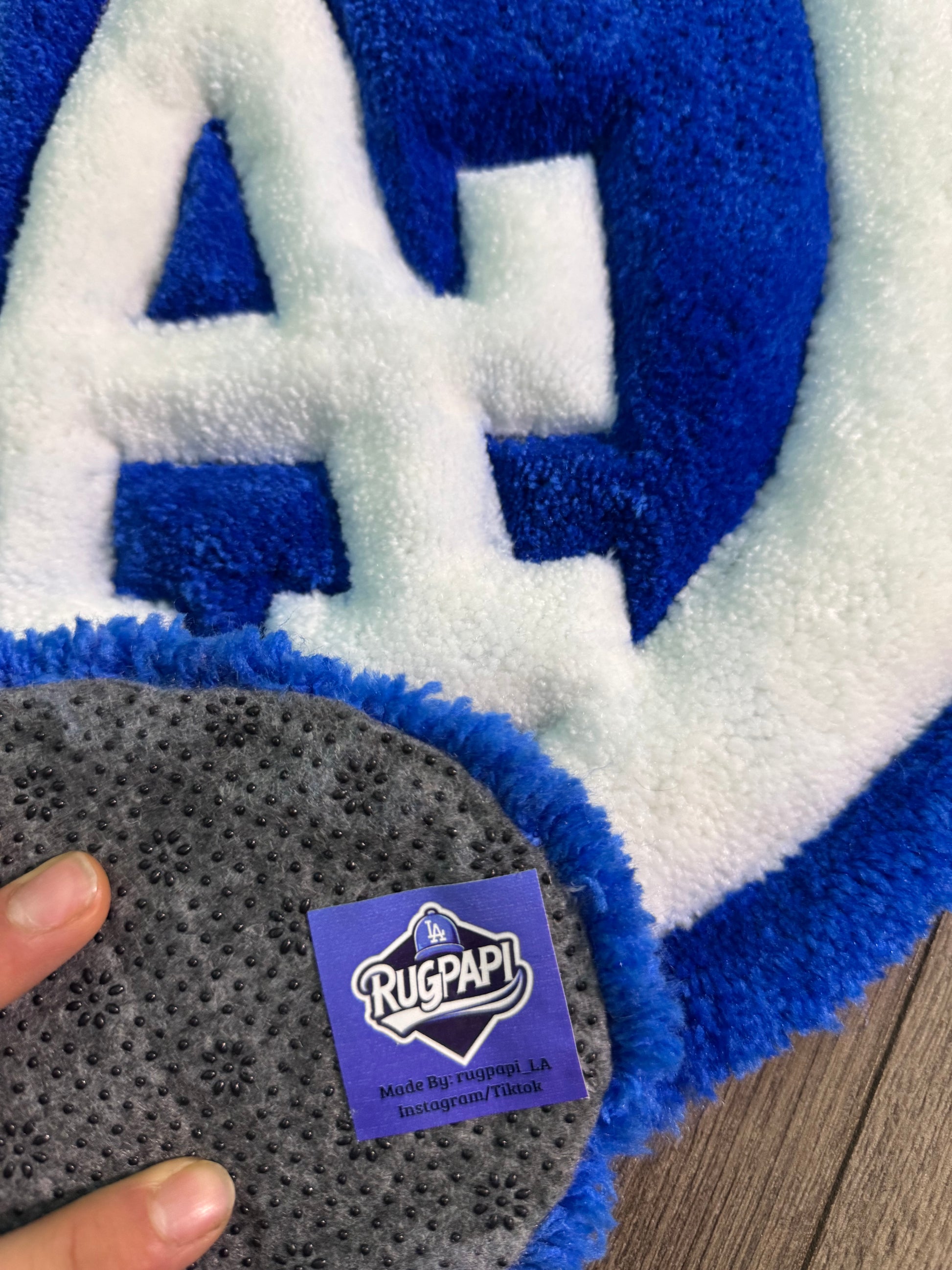 Show your team pride with this 100% handmade LA Dodgers rug! Made with 100% acrylic yarn and measuring 22x22in, it's the perfect addition to any Dodger fan's collection. Support your team while adding a touch of style to any room. Go Dodgers!
