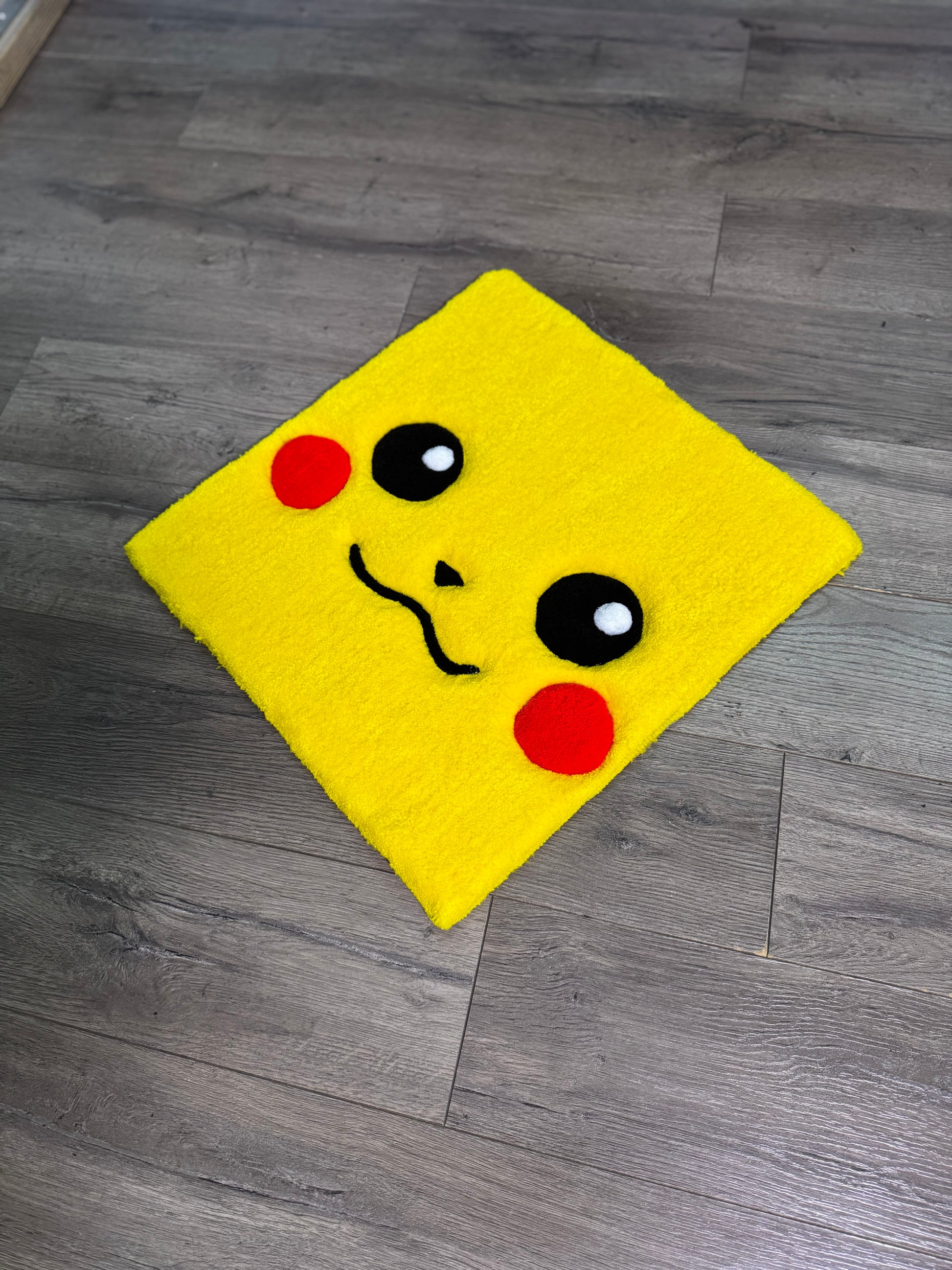 Add a touch of whimsy and charm to any room with our Pikachu Face Rug! Handmade with 100% acrylic yarn, this rug measures 19x19in and is the perfect addition to any Pokemon fan's collection. Soft and cozy, it's the perfect way to add a pop of color and personality to your space.