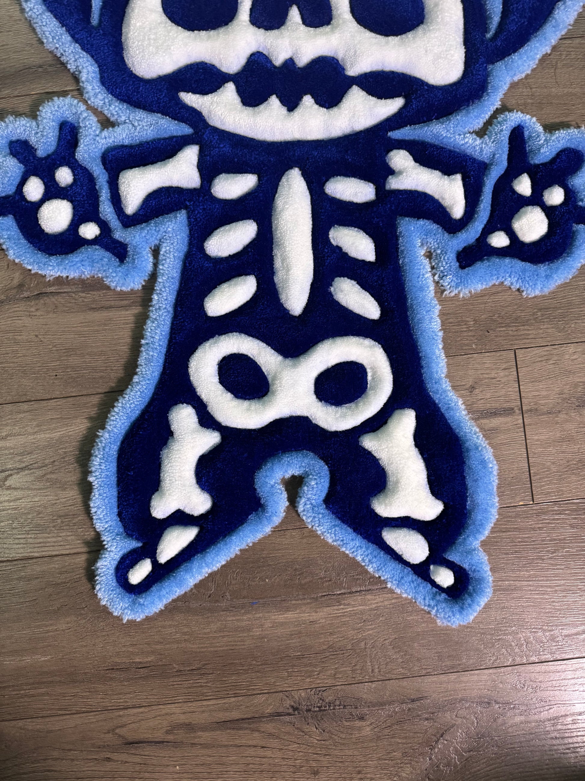 Experience the magic and charm of Lilo and Stitch with our STITCH XRAY RUG! Handmade with 100% acrylic yarn, this rug measures L 3ft 4in W 2ft 3in, making it the perfect addition to any room in your home. Add a touch of whimsy and nostalgia to your space with this one-of-a-kind piece.